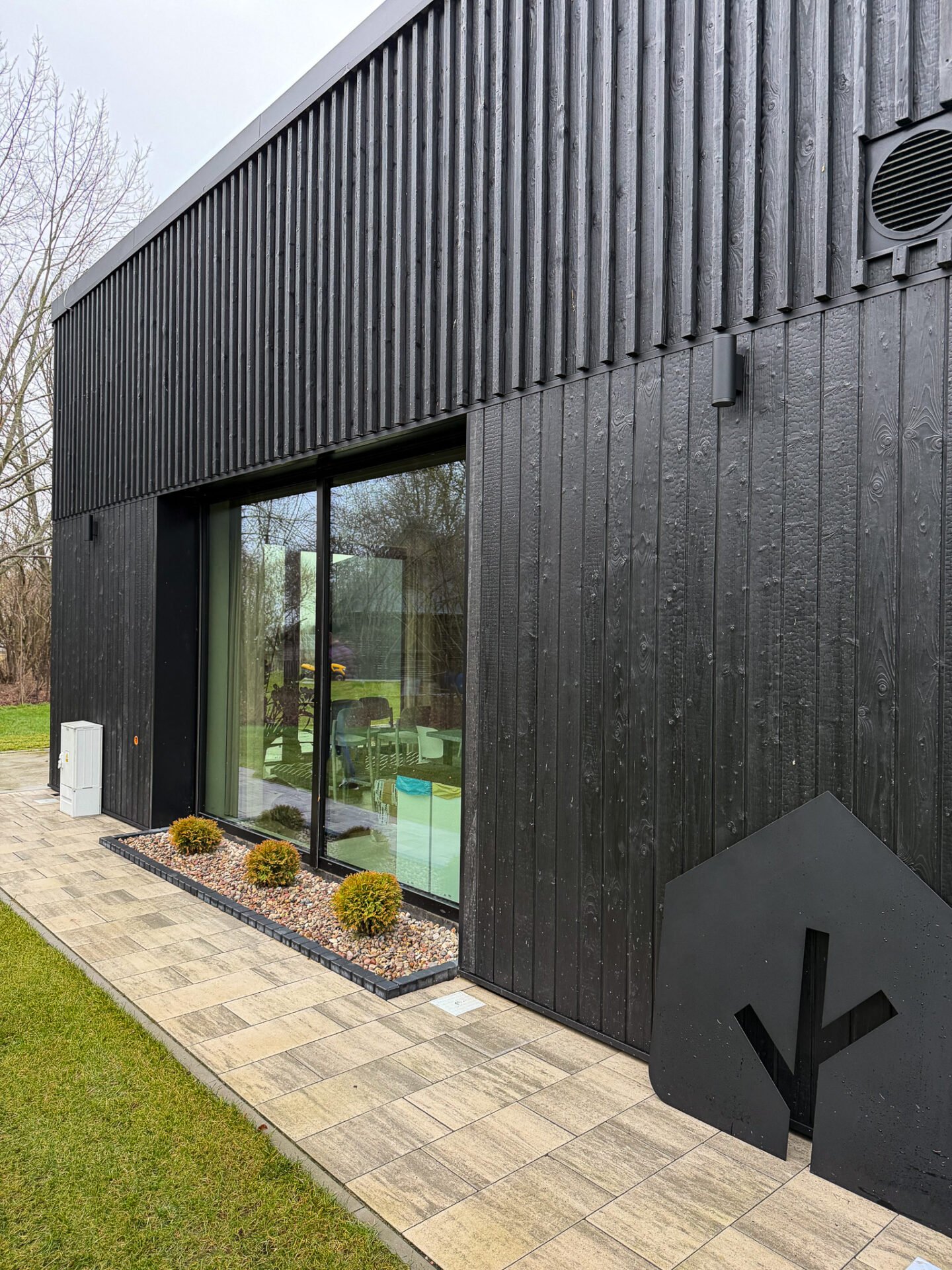 This detached office building, fully clad in black charred wood, embodies timeless elegance with a contemporary edge. The charred wood’s deep, textured finish adds a distinctive, enduring character that proves classic design never fades.